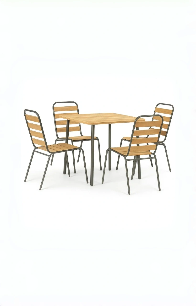 Tavolo con piano in legno e base centrale, adatto all’uso in ambienti interni come sale da pranzo, cucine o spazi dedicati alla ristorazione domestica.
